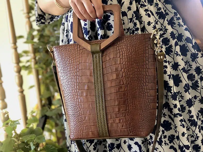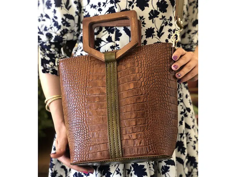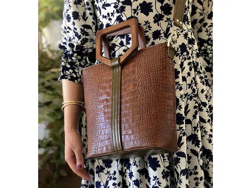 کیف زنانه دسته چوبی چرم طبیعی مدل بلوط
